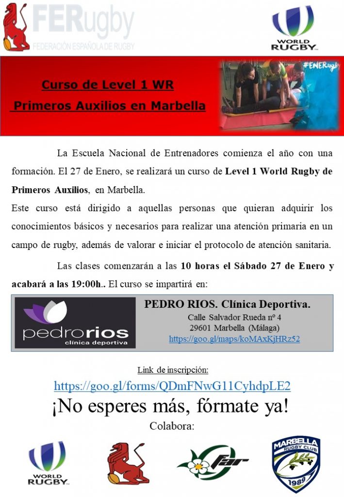 Sin categoríaCURSO DE LEVEL 1 WR. Primeros Auxilios en Marbella Posted on 5 diciembre, 20175 diciembre, 2017 by Federación Andaluza de Rugby 05 Dic Las clases comenzarán a las 10.00 horas, el próximo 27 de enero de 2018 Federación Andaluza de Rugby SELECCION PAIS VASCO – ANDALUCIA. Campeonato de España Selecciones Territoriales Femenino ESCUELA DE VALORES FAR