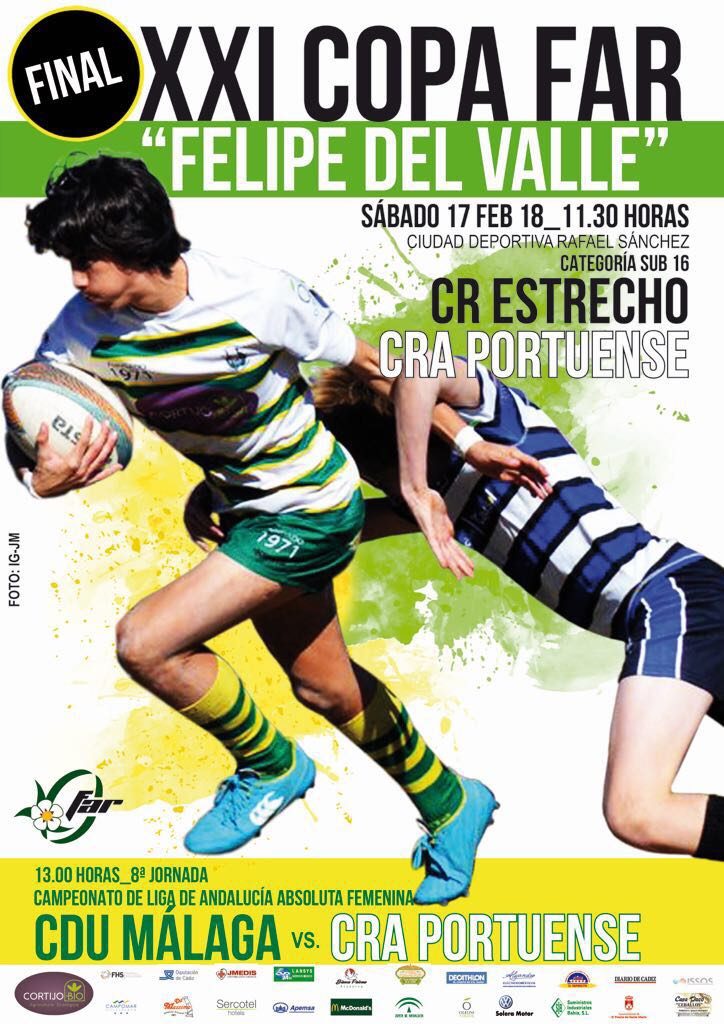 El próximo Sábado, 17 de febrero de 2018, a las 11.30 horas, en el Polideportivo Municipal de El Puerto Santa María (Cádiz), se celebrará la Final de la Copa FAR, categoría Sub 16, entre los clubes CR ATLETICO PORTUENSE – CR DEL ESTRECHO.