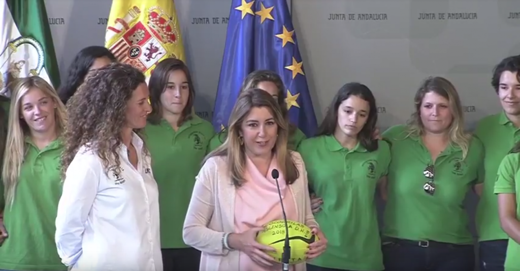 Susana Díaz, presidenta de la Junta de Andalucía recibi al equipo del Universitario de Sevilla C.R. «Las Cocodrilas» al proclamarse el primer equipo Femenino de Rugby andaluz en subir a la División de Honor Iberdrola.