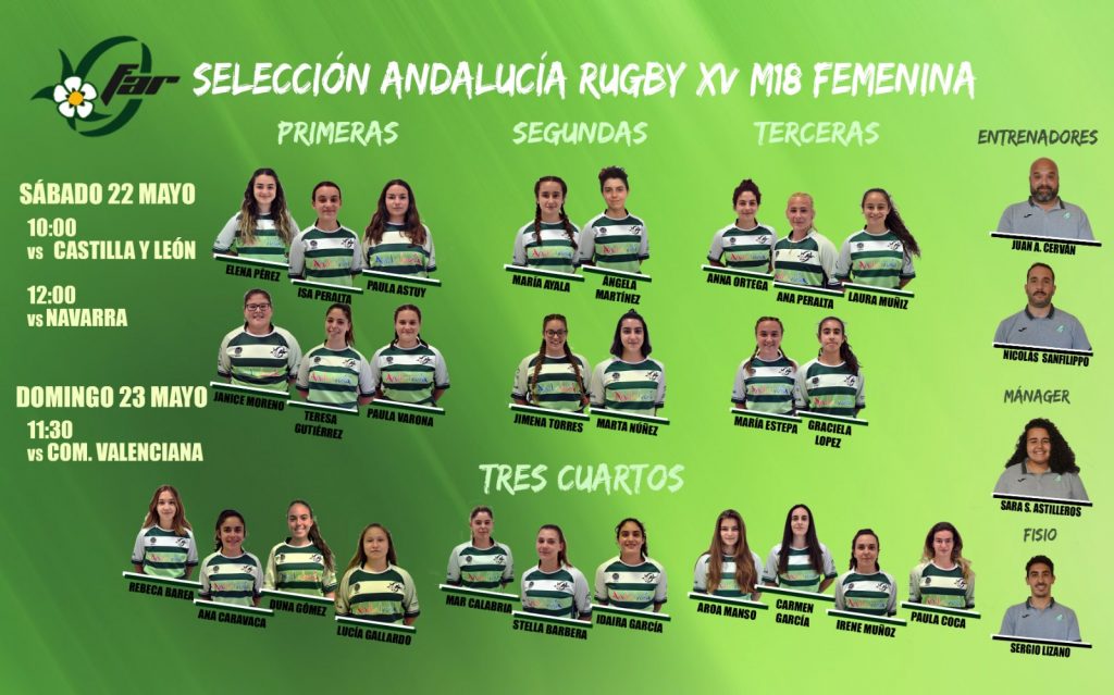 NoticiasTERCERAS DE ESPAÑA. SELECCION ANDALUZA FEMENINO M18 XV Posted on 12 mayo, 202125 mayo, 2021 by Federación Andaluza de Rugby 12 May SELECCION ANDALUZA M18-FEMENINO-XV.-21, 22 Y 23.05.21 2ª CONCENTRACION SUB 18 FEMENINO XV. 14, 15 Y 16.05.21 1ª CONCENTRACION SUB 18 FEMENINO XV.01.05.21 Federación Andaluza de Rugby FIRMA CONVENIO MINIOLIMPIADAS ESCOLARES RUGBY TAG CAMPEONA DE ESPAÑA. SELECCION ANDALUZA SENIOR FEMENINO XV
