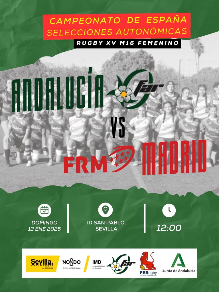 Noticias, Selecciones, Sub 16CPTO ESPAÑA SELECCIONES AUTONOMICAS M16 FEMENINO XV. ANDALUCIA VS MADRID. 12.01.2025. ID San Pablo Posted on 30 diciembre, 20243 enero, 2025 by Federación Andaluza de Rugby 30 Dic 20250112 j4 cesa m16 fxv 24_25 - andalucía v. com madrid - san pablo, sevilla Federación Andaluza de Rugby CPTO ESPAÑA SELECCIONES AUTONOMICAS M18 MASCULINO XV. MADRID VS ANDALUCIA. 11.01.2025. Campo Las Leonas Selección Andaluza M18 Masculino XV. V Concentración