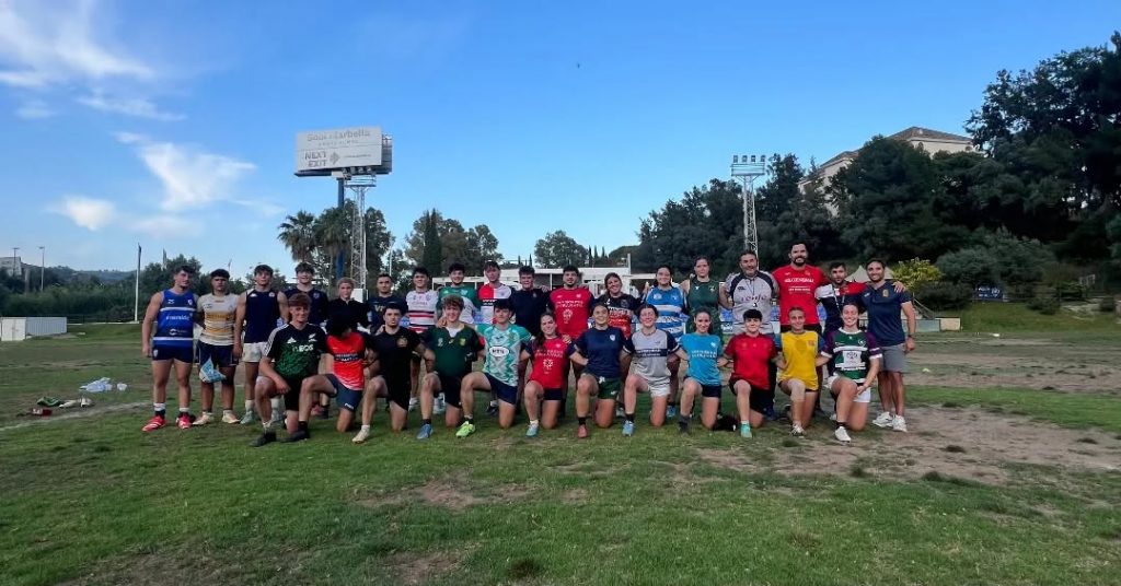 Fotografía de familia de la I Jornada de la Academia de Alto Rendimiento de la Real Federación Española de Rugby, Málaga, celebrada el pasado 14 de mayo de 2025..